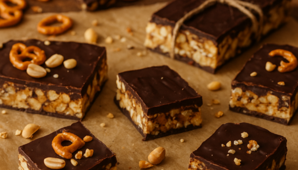 Es gibt diese Naschereien, die man einmal probiert und sofort weiß: Die mache ich wieder. Diese Peanut-Crunch-Pralinen gehören genau in diese Kategorie. Sie verbinden süße Schokolade, cremige Erdnussnote, salzige Mini-Brezeln und den unverwechselbaren Biss von gepuffter Hirse und gerösteten Kichererbsen. Ein moderner Mix, der trotzdem ein bisschen an die Ursprünge amerikanischer „Crunch Bars“ erinnert – jene Snacks, die aus Resten entstanden und schnell Kultstatus erreichten.