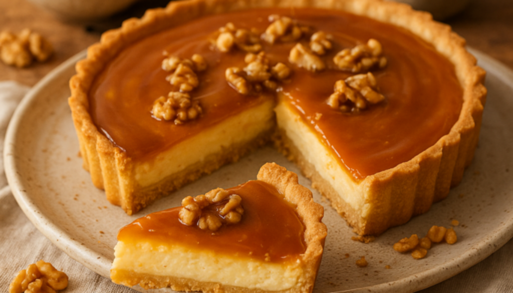 Walnuss-Tarte mit gesalzenem Honigkaramell und Vanillecreme – knusprig, cremig, perfekt ausbalanciert