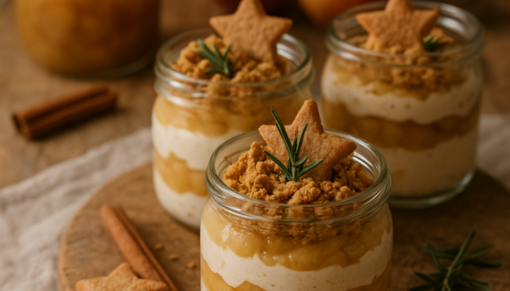 Dieses Dessert bringt den Duft von Zimt, gebrannten Äpfeln und knusprigen Keksen direkt in dein Wohnzimmer. Die Kombination aus cremiger Zimt-Sahne, fruchtigem Apfelkompott und einem Crunch aus Weihnachtskeksen ist nicht nur schnell gemacht, sondern sieht im Glas auch wunderschön aus. Perfekt für die Feiertage – oder jedes Mal, wenn du dich nach etwas Kuscheligem sehnst.